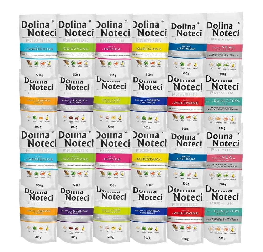 Dolina Noteci Premium Mix 12 smaków – zestaw karmy dla psa 24 × 500 g