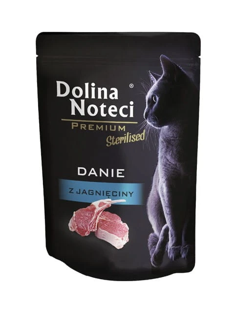 Zestaw mokrej karmy dla kota sterylizowanego Dolina Noteci Premium to pełnoporcjowy multipak w saszetkach, z trzema wariantami: wołowina, kaczka i jagnięcina. Receptury mają obniżoną zawartość tłuszczu oraz zawierają taurynę, L-karnitynę i DL-metioninę. Saszetka 24 × 85 g.