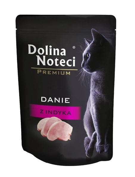 Dolina Noteci Premium Danie z indyka to pełnoporcjowa, bytowa karma dla dorosłych kotów wszystkich ras, wyróżniająca się starannie dobranym składem oraz wysoką smakowitością. Receptura oparta jest na różnych surowcach z kategorii mięso i produkty pochodzenia zwierzęcego, w tym na mięsie i podrobach z indyka, kurczaka, cielęciny i wieprzowiny. Dzięki temu karma dostarcza wartościowego białka i wspiera codzienne żywienie kota.