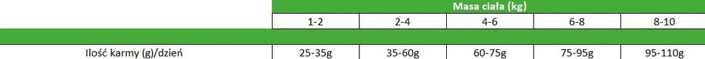 - kompleks białek zwierzęcych: wołowina 26%, wieprzowina 14%, indyk 6%, krewetki 4%
