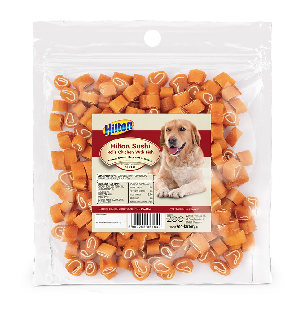 HILTON Sushi Kurczak z rybą Przysmak dla psa 500g