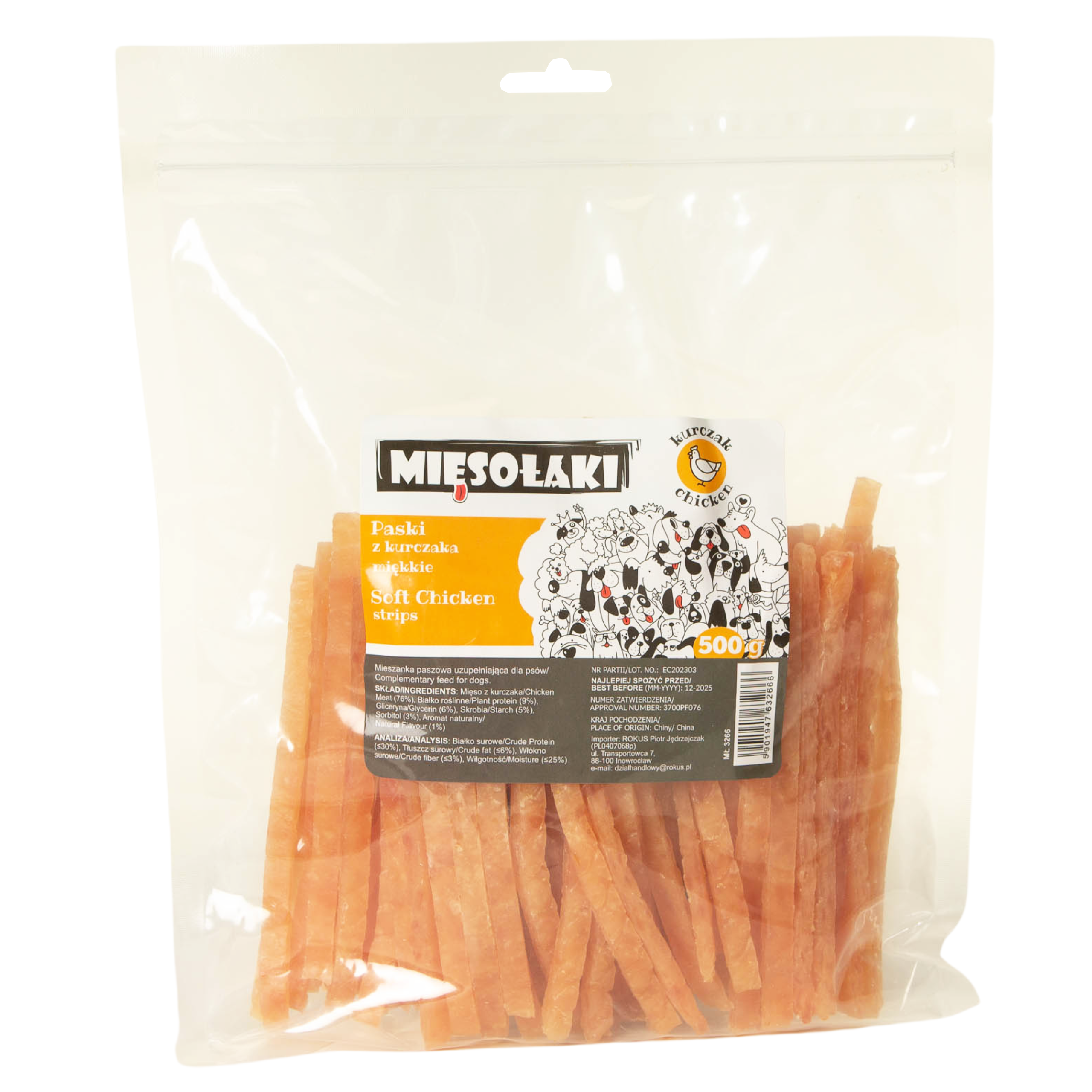 MięsoŁaki Miękkie Paski z kurczaka Przysmak dla psa 500g