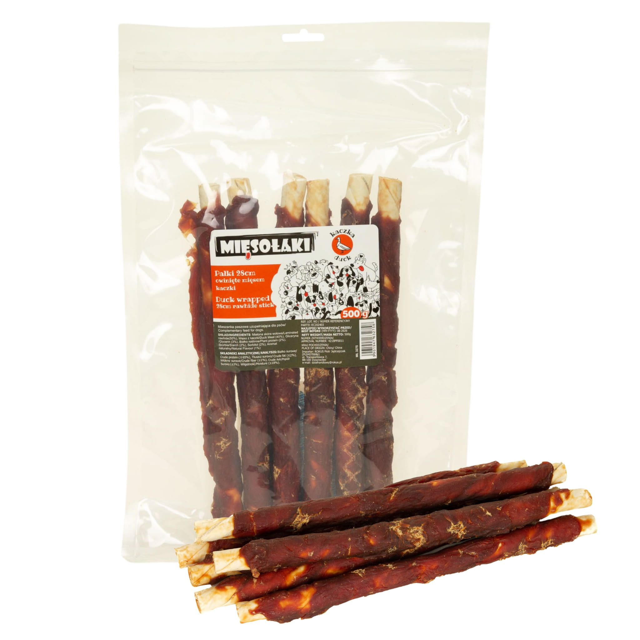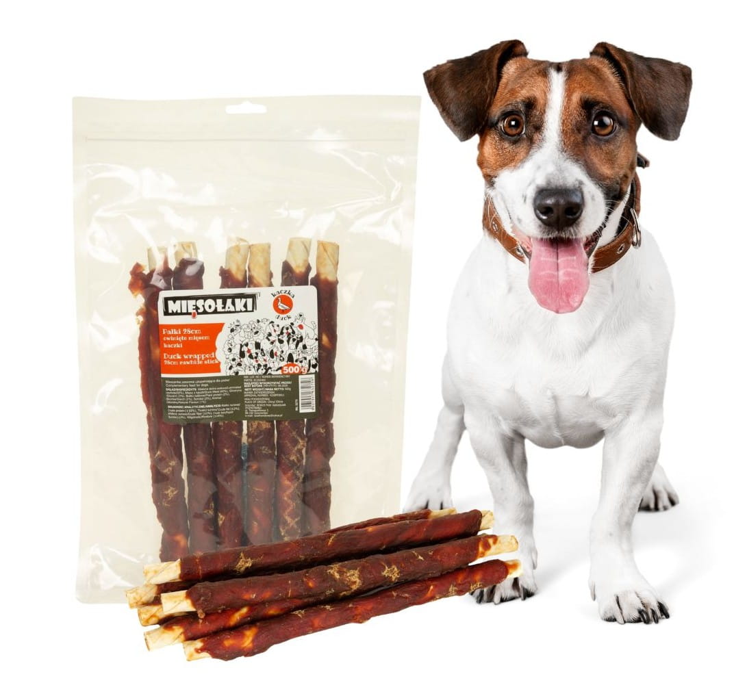 MięsoŁaki Pałki owinięte mięsem kaczki 28cm Przysmak dla psa 500g