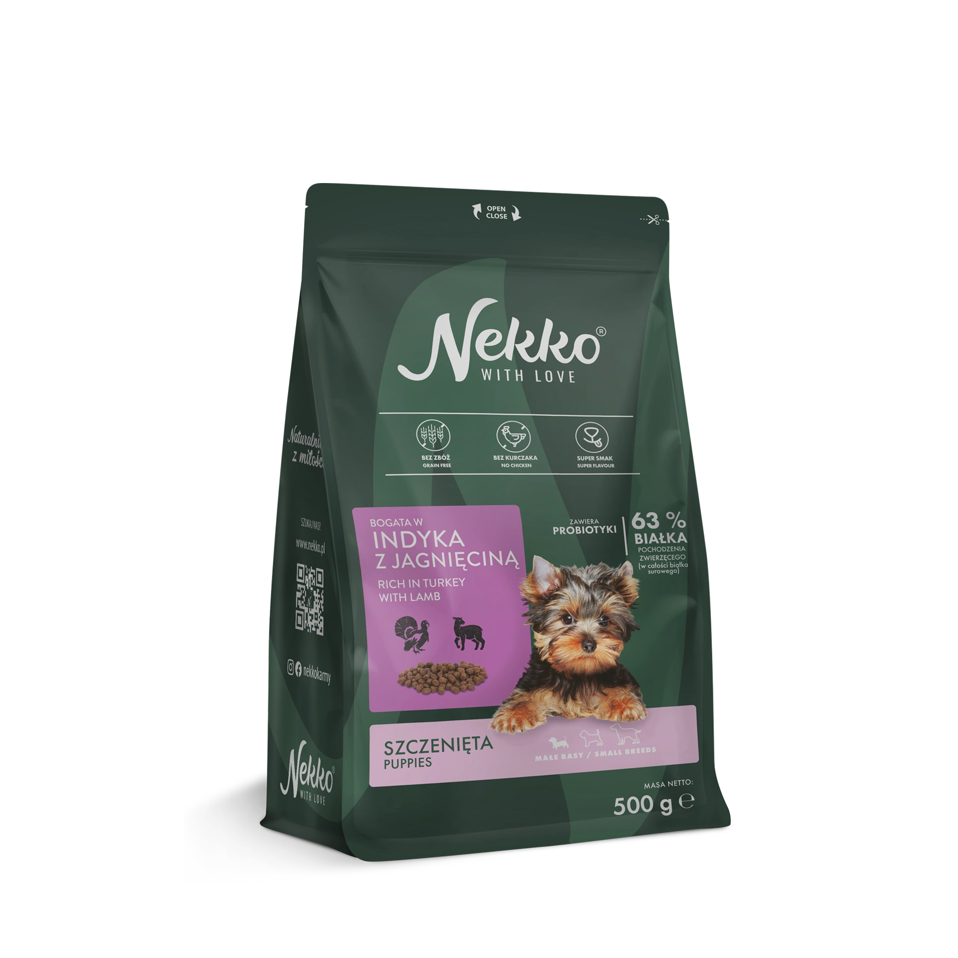 NEKKO karma sucha bogata w indyka z jagnięciną dla szczeniąt małych ras 500g
