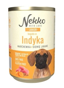 NEKKO mokra karma dla psa JUNIOR Indyk Marchewka Siemię lniane 400g