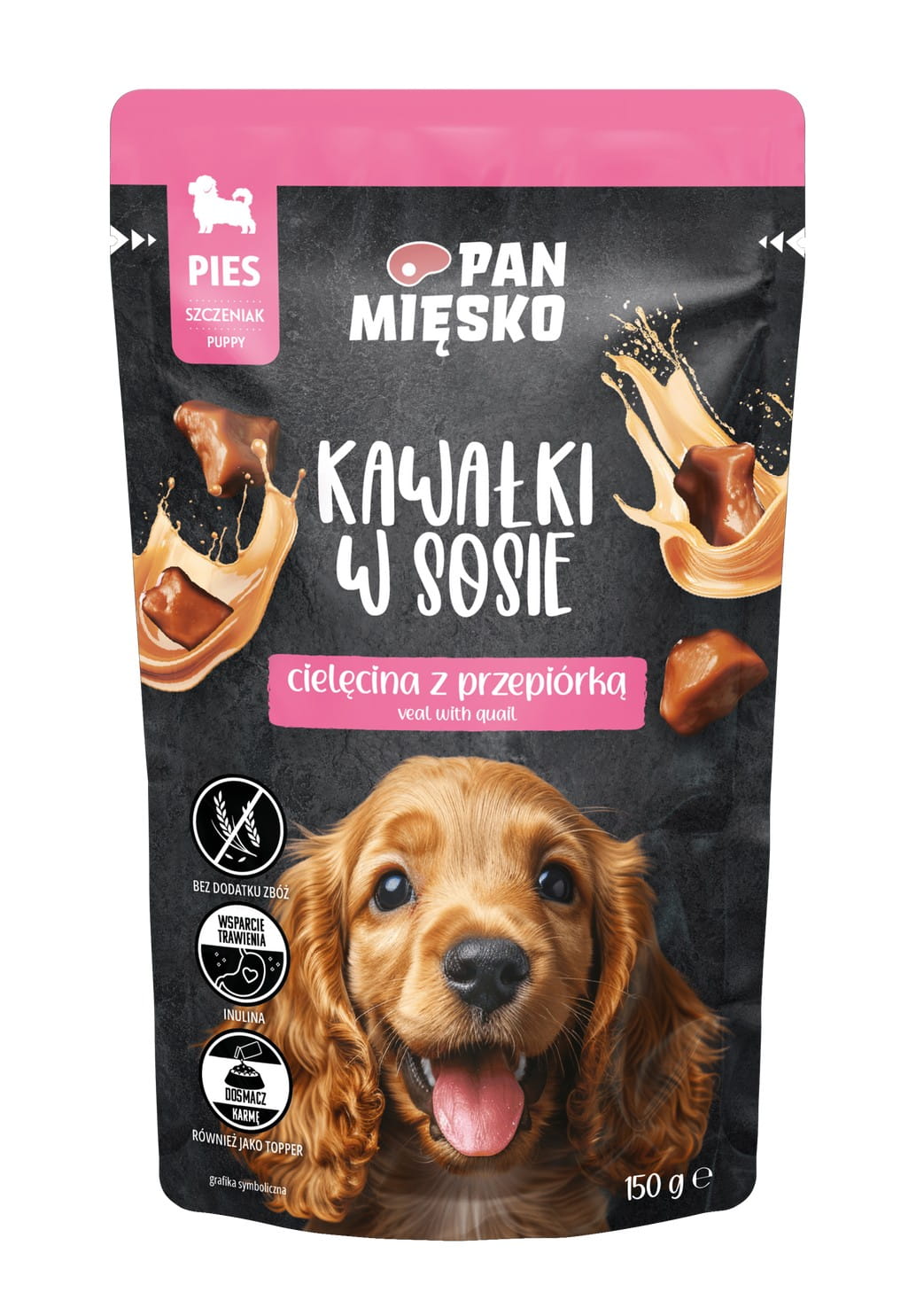 PAN MIĘSKO Karma mokra dla SZCZENIAKA Kawałki w sosie Cielęcina z przepiórką 150g