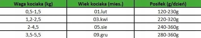 Formułę uzupełniono o olej z łososia, drożdże piwne oraz rozmaryn. Kluczowym elementem żywienia kociąt jest tauryna – w tej karmie jej poziom został jasno określony.
