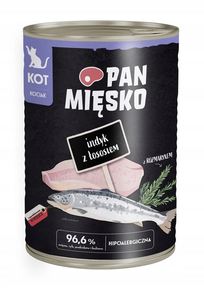 - 12 × 400 g – Pan Mięsko karma mokra dla kociąt Indyk z łososiem