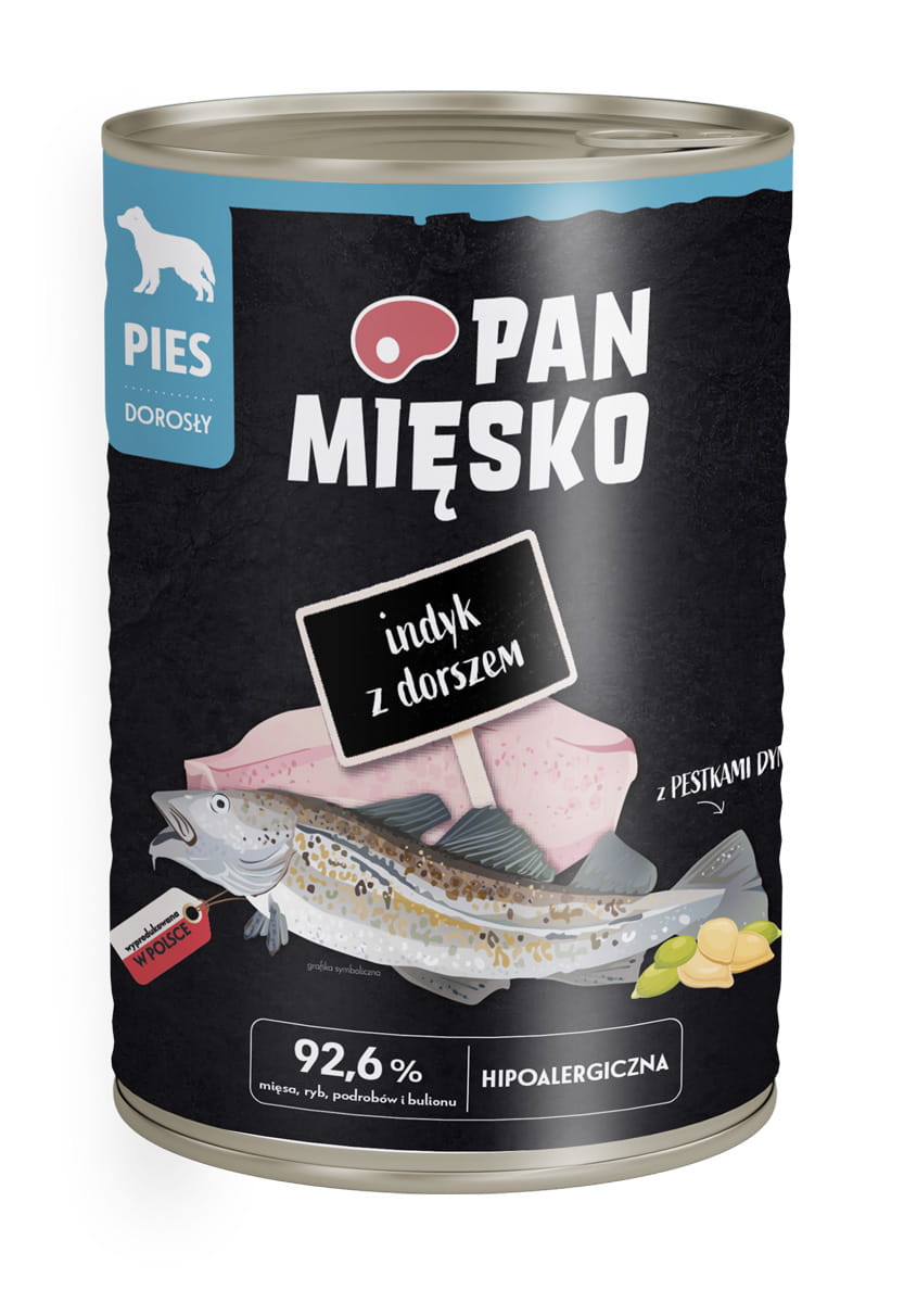 PAN MIĘSKO Indyk z dorszem 400 g – karma mokra dla psa
