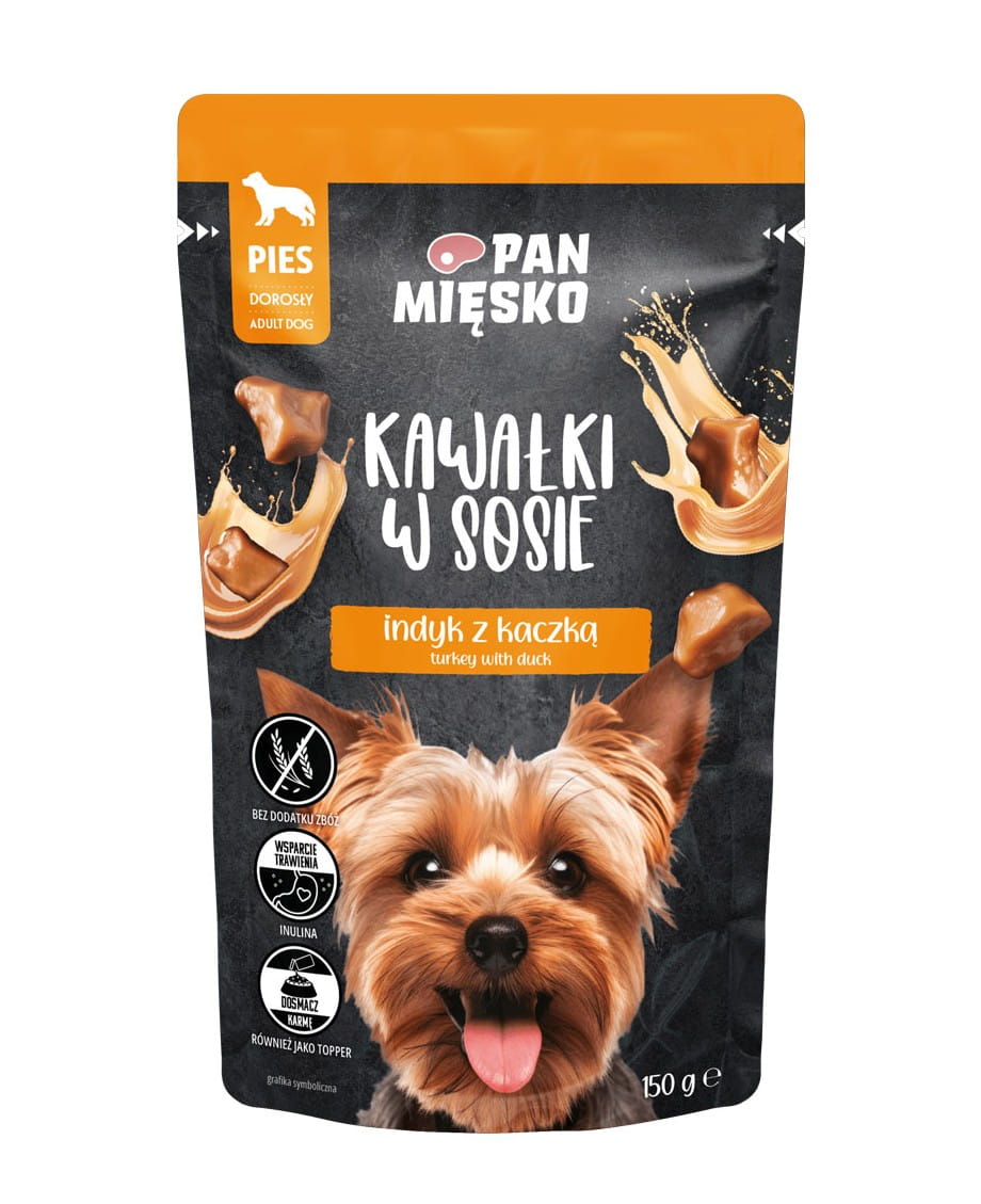 Pan Mięsko Indyk z kaczką – karma mokra dla psa, soczyste kawałki w sosie