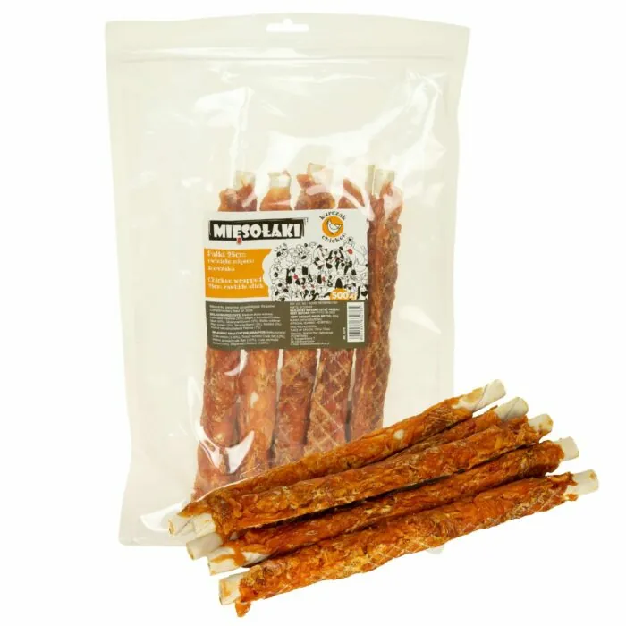 Przysmak dla psa Długie Pałki owinięte Kurczakiem 500g Mięsołaki GRYZAKI