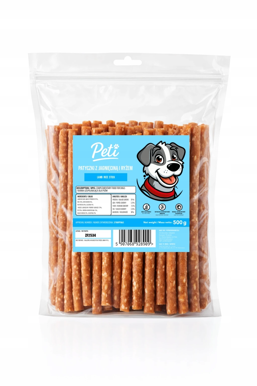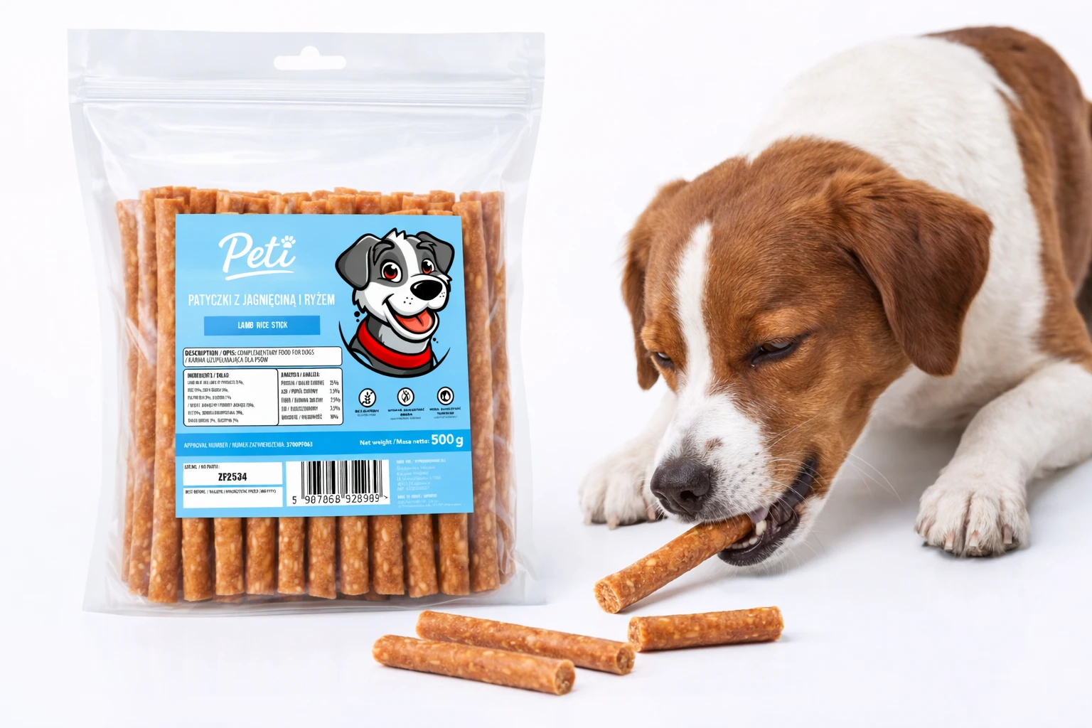Peti Patyczki z Jagnięciną i Ryżem 500 g – przysmak dla psa, smakołyk treningowy