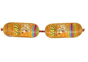 RAFI mokra karma dla psa to pełnoporcjowa karma w formie batonu dla dorosłych psów o umiarkowanej aktywności. Zawiera 70% mięsa i produktów pochodzenia zwierzęcego oraz zestaw witamin i składników mineralnych wspierających codzienne żywienie. Baton 900 g.