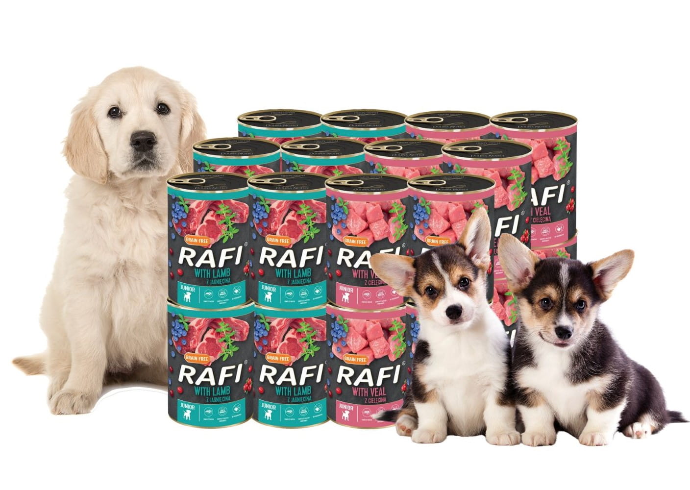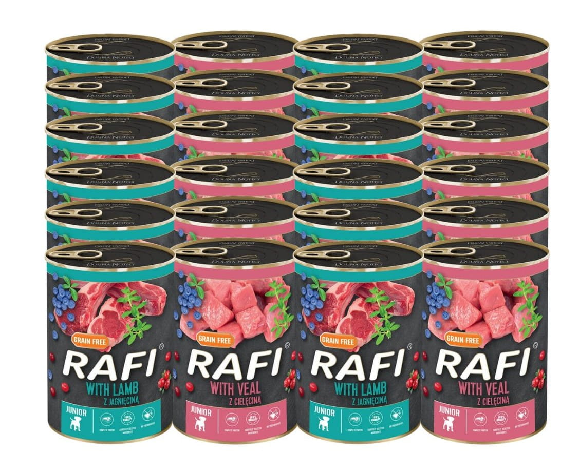 RAFI Junior MIX 24×400 g – zestaw karmy mokrej dla szczeniąt z cielęciną i jagnięciną