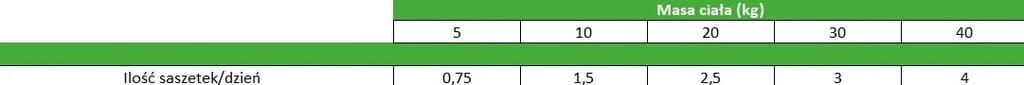- żołądki wołowe 4% oraz szynka wieprzowa 4% – wyraźne urozmaicenie białkowe