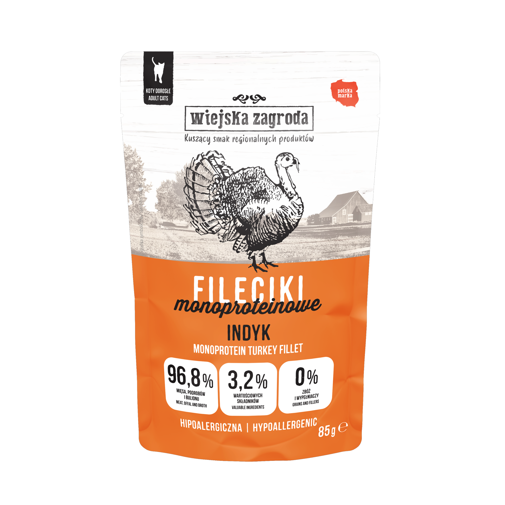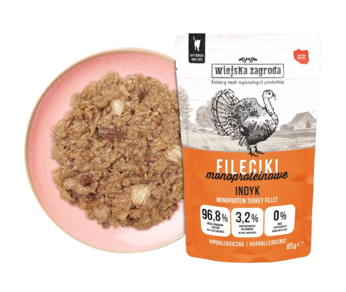 WIEJSKA ZAGRODA Karma mokra dla kota Fileciki Indyk 85g MONOPROTEINOWE