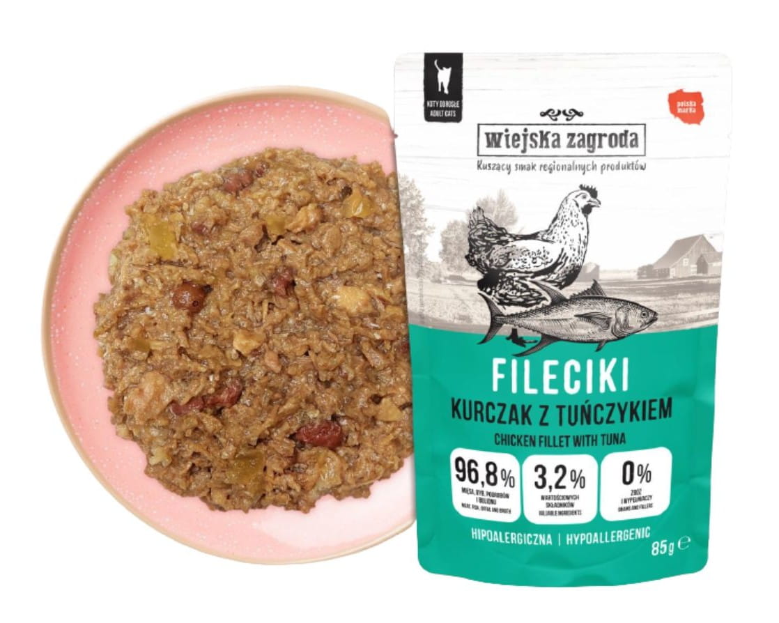 WIEJSKA ZAGRODA Karma mokra dla kota Fileciki Kurczak z tuńczykiem 85g