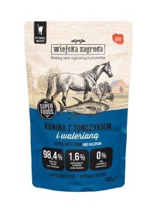 Wiejska Zagroda Konina z tuńczykiem i walerianą – karma mokra dla kota bezzbożowa